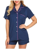 This pajamas top for women features short sleeve, button-down design and chest pocket with notch collar. The detailing on the top makes it look like you are a classy pajama girl when in actuality, you just like comfortable, soft pj's. These will make you feel like you're getting the luxe treatment without spending a ton of money