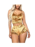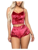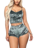 DESIGN:Adjustable spaghetti strap,bow decor, crop top+elastic waist bodycon short,velvet 2 piece outfit