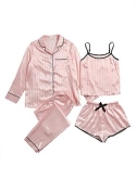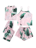 Features: Satin, Spaghetti Strap Cami; short/Long sleeve shorts and shirt set