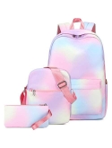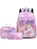 The school back pack main compartment with double-zipper closure; 1 exterior zipper pocket; Water-bottle pockets on both sides; 1 padded iPad/Laptop pocket; 2 interior open pockets. The crossbody cell phone bag has 2 Large expandable pockets. The lunch bag is big enough for your lunch food, fruit, a cup of yogurt, salad, a bottle of drink.