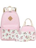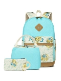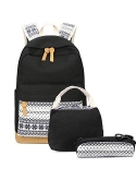 School backpack set including teens backpack + cell phone pouch/bag + lunch bag 3-in-1 school bookbags, which are made of durable canvas material and smooth zipper, and with vintage printing design.