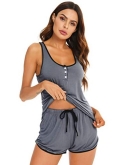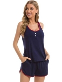 TWO STYLES CAMI SETStyle A: Pjs sleep set comes with a pair of racerback tank top and matching shorts . Style B: Cami set features v neck camisole top with adjustable spaghetti straps, you can control the length as your need.