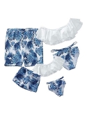Matching - Family swimsuits bikini set featuring ruffle top and bottom for women and girls. Swim trunk for men and boys. Matching the same style printing swimsuit with your kids, cutest family matching swimwear, best choice for swimming and shooting.