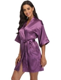 Lightweight and comfortable, smooth feel and soft touch.. Relax yourself in this gentle soft silky pure color short robes after a long day work.