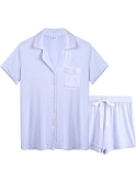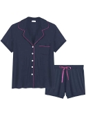FULL BUTTON FRONT TOP : Cherrydew short sleeve pajama set is featuring Full Button Down Top that is easy get on and off without mess up your makeup or hairdo. Classic Notched Collar with picot trim Front Pocket hits at waist. Practical Comfortable and Easy.