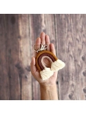 4 Pieces Mini Macrame Keychains Boho Macrame Bag Charms with Tassels Handcrafted Accessory for Car Key Purse Phone Supplies, Beige