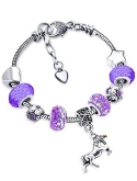 Zhanmai Unicorn Sparkly Crystal Charm Bracelet Bangle with Gift Box Set for Girl Lady