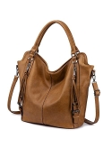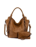 Classic Hobo Purse: Top zipper closure, 2 front zipper pockets with elegant tassels design, 1 back pocket, fashionable and practical handbags for women