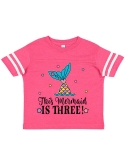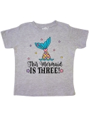 Cute 3 year old birthday party outfit for girls with this mermaid is three quote on a 3rd birthday Toddler T-ShirtSolid color tees are 100% cotton, other are a cotton/polyester Blend.Topstitched rib crewneck