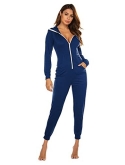 Comfort relaxed fit one-piece lounger house Pajama's, Side seam pockets, Chest slip Pocket, Long sleeves with contrast color trim, cuffs and inner lined drawstring hood