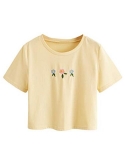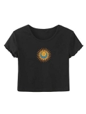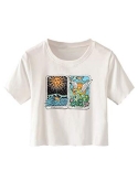 Feature: Daisy flower/graphic print, round neck, short sleeve, summer crop top t shirts