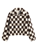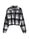Womens Hoodies Pullover / Quarter Zip Pullover / Fluffy Sherpa Sweatshirts / Lightweight Soft Material / Classic Long Sleeve / 1/4 Zip Up With Stand Collar / Warm Sherpa Fleece / Fashion Color Block Style / Classy Plaid Pattern / Casual Slouchy Outerwear.