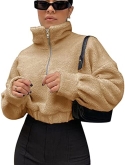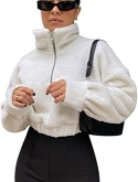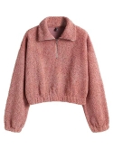 Womens 1/4 Zipper Sherpa Fleece Sweatshirt Pullover Tops Slouchy Stand Collar Fuzzy Jacket Coat.