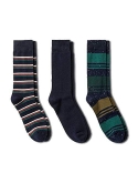 Striped 3 Pack of Men's Crew Socks. Polyester and Spandex provides breathable comfort for all-day wear. A hint of spandex offers stretchy comfort for easy movements 98% Polyester, 2% Spandex