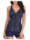 This tankini swimsuits feature with removable padded push up bras, which provide you sturdy support and shaping. Racerback and V neck design will show off your charming curves.