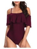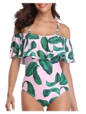 Off shoulder swimsuits with tropical pattern and ruffle style will look fantastic and generous for Hawaii, your Honeymoon, a beach holiday or vacation.
