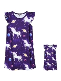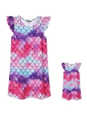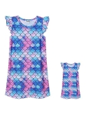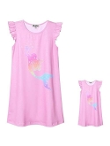 Matching Girls&Dolls Nightgowns, fit almost 18" dolls and America Girl doll, flutter sleeve, loose fit, knee-length pajamas dress