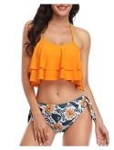 Ruffle Bikini Set: The bikini is designed with halter and two layers flounce, which is pretty suitable for ladies and teen girls.