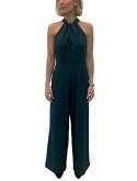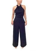 Women's Twist Neck Halter Jumpsuit with Pockets