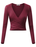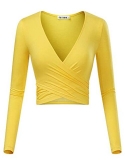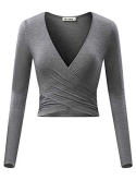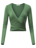 Long sleeve, sexy v-neck, stylish cross front crop tops show women's sexy waist line and curve.