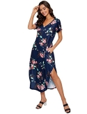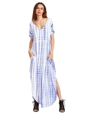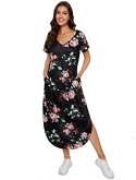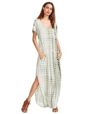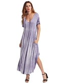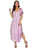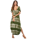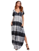 Features: Tie Dye print, short sleeve, two sides split, with two pockets, v neck; Simple casual style, fit for everyday dressing, wear at home, travel, you can match with your pumps, heels, boot