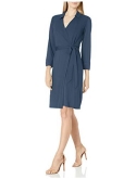 This classic wrap dress distinguishes with button cuffs, collar and an overlapping bodice