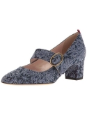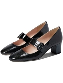 Round-toe Mary Jane pump featuring wide strap with oval buckle closure Mid-height block heel Contrasting pull at counter Hand made in Italy