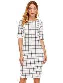 Features: This women bodycon dress features high-quality material, plaid pattern, round neck, knee length. The pencil dress goes great with any body shape, comes in a wide range of sizes and look just great on you whenever you decide to wear it.