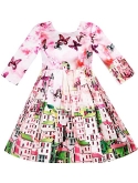 Girls Dress Long Sleeve Unicorn Castle Rainbow Purple Size 5-10