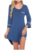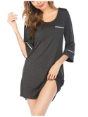 Boyfriend Style night dress with scoop neck, 3/4 sleeves and chest pocket.