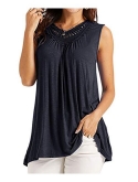 The loose tank tops with lace patchwork,round neckline,pleated front,sleeveless,casual style pure color basic tanks, long enough to cover your hips.