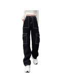 Feature: Patchwork, destroyed, y2k fashion, high waisted, y2k fashion pants, straight pants, patchwork jeans, patchwork denim jeans for women, pencil jeans, distressed loose jeans for women, omens stretch denim pants