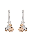 Officially Licensed Disney Jewelry; Gleaming hoop earrings feature dangling Minnie Mouse charms adorned with luminous Clear crystal birthstones for sparkling style