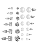 Item Women's Stainless Steel Round Clear Cubic Zirconia Pearl Stud Earrings for Women Girl Quantity 12 Pair Material Pearl and Stainless Steel, Size:4mm/5mm/6mm/7mm/8mm/9mm