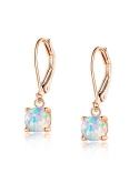 Opal Leveback Earrings Dangle White Rose Gold Plated for Women Girls Hypoallergenic 6x8mm