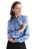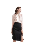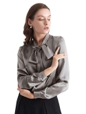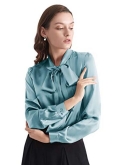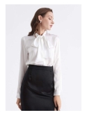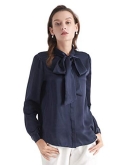 ELEGANT, TIE COLLAR, BUTTON FRONT: A silk blouse that makes you look stunning, with the great sheen of silk and second-to-none silhouette. It's no doubt that your skin will be perfectly glowing the moment you put it on. Exaggerated bow tie neckline draws people's attention to your beautiful face and neck. Plus, you can just let loose the necktie, to keep the breeze at bay. Model: Anna is 5'7''/175cm, wearing size S. Bust-31.5"/80cmWaist-25"/64cmHips-35"/90cm.