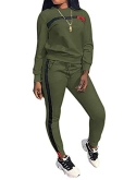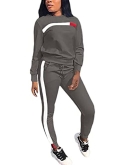Features: Women's casual two pieces sports outfits, classic pull on closure, stripe patchwork, long sleeve round neck sweatshirt tops, high waist skinny long pants with two side pockets, elastic waist, solid color. A must-have activewear/sweatsuit/tracksuit/jogging suit set for womens/ladies/juniors/teens/girls.