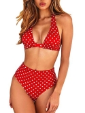 Padded, removeable pad, wire-free Halter, backless, high waist Tropical print&polka dots print Care: Machine wash on the gentle cycle,dry on low heat