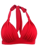 M(US6-US8)32C-34C-34D-36C-34DD);Features: Vintage style plunge neck bikini top with self tie at neck and back closure.It doesn't have any under wire but it does support pretty well.