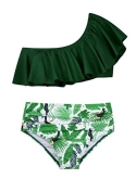 High waisted bikini bottom with lovely patterns, front ruched details; offer moderate coverage
