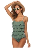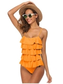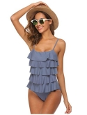 This one piece swimsuit very flattering and comfortable fit, cute design with layered ruffle, and removable cups pads, adjustable shoulder straps for a better fit.