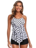 PoLka dot printed/Floral printed/Solid flounce top with Boyshorts bottom 2 piece swimsuits, Adjustable shoulder strap, Removable and Replaceable Cup Pads, No underwire, Tummy control, super cute and comfy