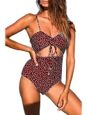One Piece Swimsuits High Waisted Bikini Swimwear Womens Retro Bandeau Bathing Suits Cutout monokini for ladies teens juniors girls beachwear lace up bandage high cut swimming suit padded push up print athletic cup cute black orange red blue s m l xl water sports pool dots vintage one piece swimsuits for womens bikini swimsuit womens high waisted one piece bathing suits bandeau bathing suits for women tankini plus size tummy control cover sexy slimming swim suits long torso swimsuit one piece
