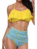 Classic coverage: Falbala top swimwear matches with printed bottoms,Retro swimwear will make you regain confidence and fabulously show your curves.