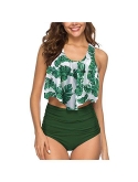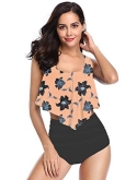 Este conjunto de bikini con volantes presenta una parte superior de volantes irregulares, tirantes de hombro ajustables con espalda cruzada, lunares / estampado, parte inferior de cintura alta retro Bohemia.