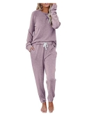 Features: Off Shoulder, Long Sleeves, Crewneck Pullover Top, Joggers Pants with Adjustable Drawstring, Solid Color, Relaxed Fit Style, Womens 2 Piece Loungewear Set.