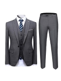 STYLE & DESIGN: BLazer - Slim Fit, Single-breasted, One Button, Notched Lapel, Lapel Buttonhole for Wearing Boutonniere or Stick Pins, One Chest Pocket, One Inner Pocket, Two Flap Pockets, Four Sleeve Buttons; Trousers - Flat Front Free Length Pants; Vest - Single-breasted Five Button Peaked Vest; Three Classic Colors[Black & Blue & Grey] available.