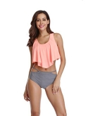 Features: Flounce design for Tankini Top looks very cute, comfy and flattering. Removable soft padding offers great support and enhance your shape, Wide strap at front and two adjustable straps at back pretty secure and the unique design also helps you push up.