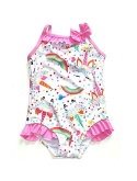 This is the bright colorful bathing suit for girls, unicorn pattern and fashionable design style. Dress our beautiful casual swimsuit for baby girls, enjoy the summer, enjoy the beach, enjoy life!