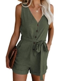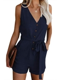 Design:sexy v neck button dowm romper short jumpsuits,summer sleeveless tank top playsuits short pants with pockets,fashion tie waist summer short pants jumpsuit rompers